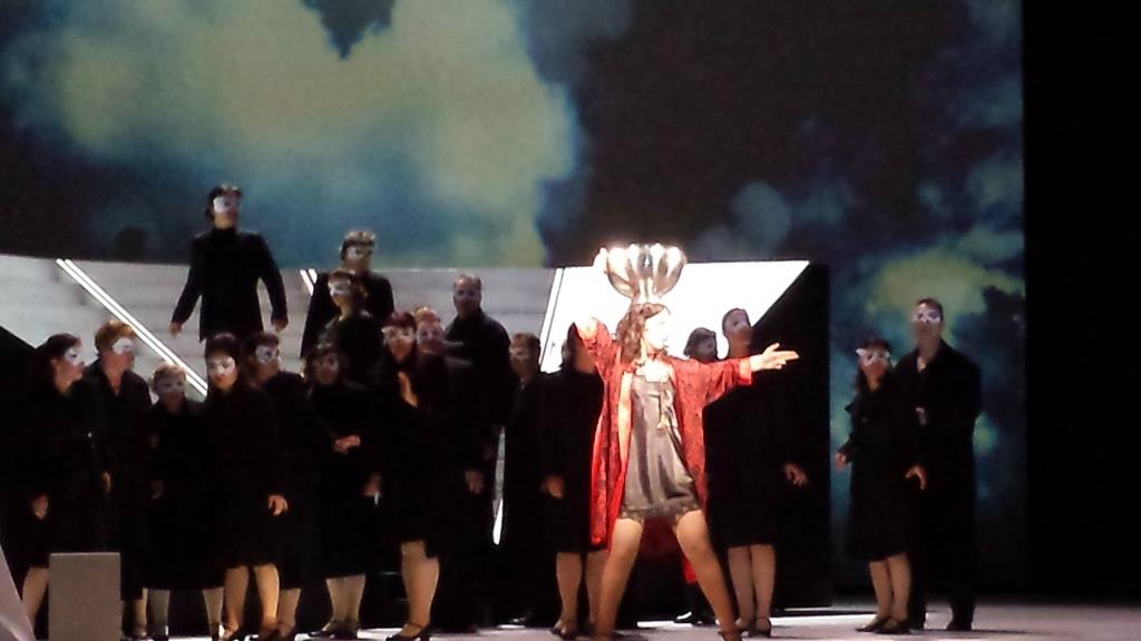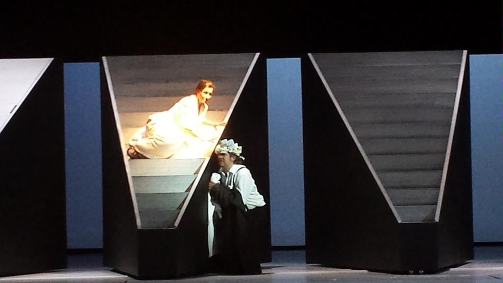 Die Idee für diese Bühne stammt von Moritz Nitsche. Sein Vorschlag ist schon ein bisschen genial, weil das Architektonische der Musik in der Art der sich ständig wandelnden Architektur der Bühne sich widerspiegelt. Das hat etwas sehr Konstruktivistisches und Graphisches, was beides in Strawinskys Musik drin ist. Insofern ist es ein hochmusikalisches aber auch hochkompliziertes Bühnenbild. Es besteht aus Treppen und Schrägen, also aus der Idee: man klettert irgendwo hoch um dann auch wieder abzurutschen. Wer hoch steigt, kann tief fallen. Es gibt keinen gesetzten Ort. Es sind innere Zustände, die sich in Orte umwandeln. Insofern spielt das Bühnenbild als Mitspieler mit. Und das ist eine heikle und komplizierte Sache. Das Bühnenbild wird von Statisten bewegt, die sich im Geschehen mit dem Chor und den Solisten bewegen. Die Räume verändern sich ständig, wie auch die Zustände und emotionalen Situationen ineinander übergehen.